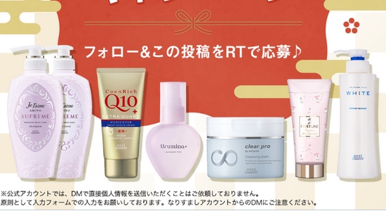参加方法は、コーセーコスメポート公式Twitterアカウントをフォロー、指定されたツイートをリツイートすると応募できます。