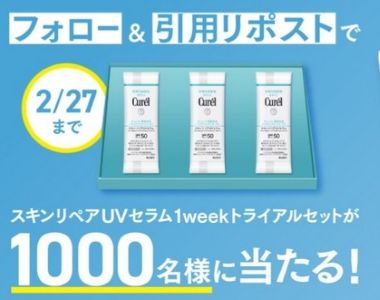 キュレル スキンリペアUVセラム 1Week トライアルセットサンプルを1000名様にプレゼント【X Twitter】。
