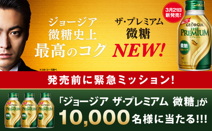 ジョージア微糖史上最高のコクである「ジョージア ザ・プレミアム 微糖」が3月21日の発売前に当たるチャンス!緊急ミッションにチャンレンジして当てよう