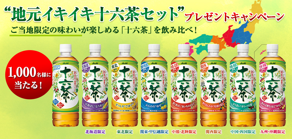 アサヒ飲料「地元イキイキ十六茶セット8本」が抽選で1,000名様にプレゼントキャンペーン
