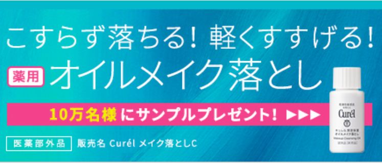 花王キュレル潤浸保湿「オイルメイク落とし」サンプルが10万人に当たるプレゼントキャンペーン。